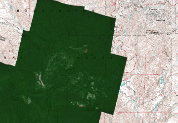 of unburned forest and cool ground are shown in green.