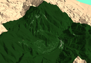 Image from above, on a shaded relief map.