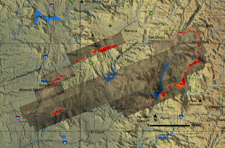 View the Cedar Fire Pass 53, 54 in Google Earth.