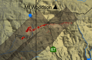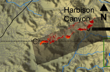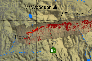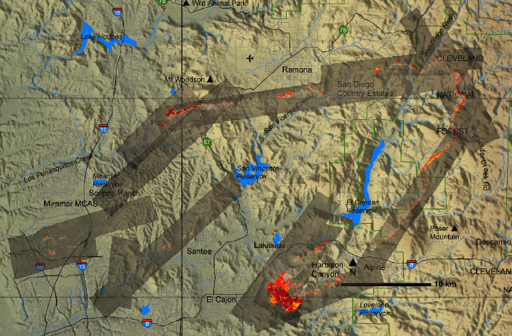 Ground surface temperatures as viewed from above at 8-12 micrometers wavelength on 26 October 2003, between 18:10 and 19:35 PDT.