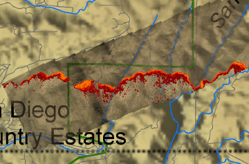 View the Cedar Fire Pass 53, 54 in Google Earth.