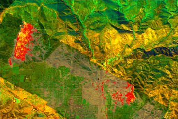 Ground surface temperatures as viewed from above at 11.9 micrometers wavelength