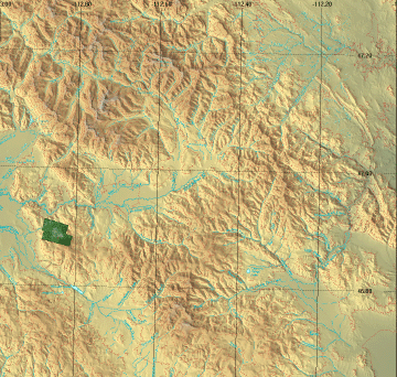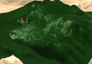 Image from above, on a shaded relief map.