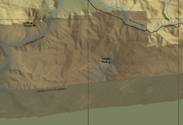 Plan view of fire shown on shaded relief map (DEM).