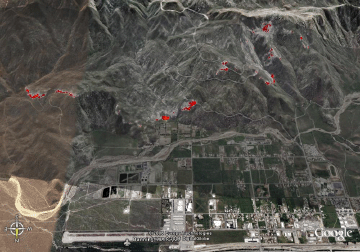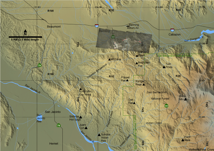 Ground surface temperatures as viewed from above at 8-12 micrometers wavelength on 26 October 2006, between 19:57 and 19:58 PDT.