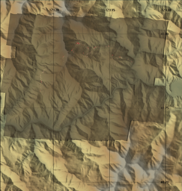 Ground surface temperatures as viewed from above at 8-12 micrometers wavelength on 6 September 2006, between 18:08 and 18:35 PDT.