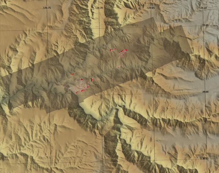 Ground surface temperatures as viewed from above at 8-12 micrometers wavelength on 7 September 2006, between 18:38 and 18:46 PDT.
