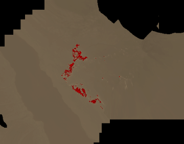 Ground surface temperatures as viewed from above at 8-12 micrometers wavelength on 8 September 2006, between 18:57 and 18:58 PDT.