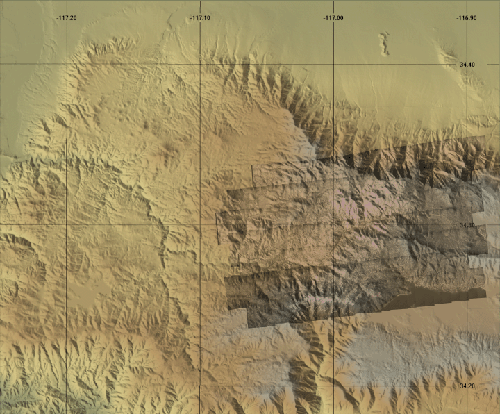 Ground surface temperatures as viewed from above at 8-12 micrometers wavelength on 18 September 2007, between 16:01 and 16:41 PDT.