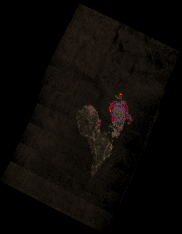 Purple is used to show cooling ash but could be associated with bare ground away from fire.