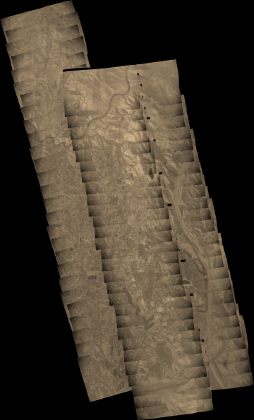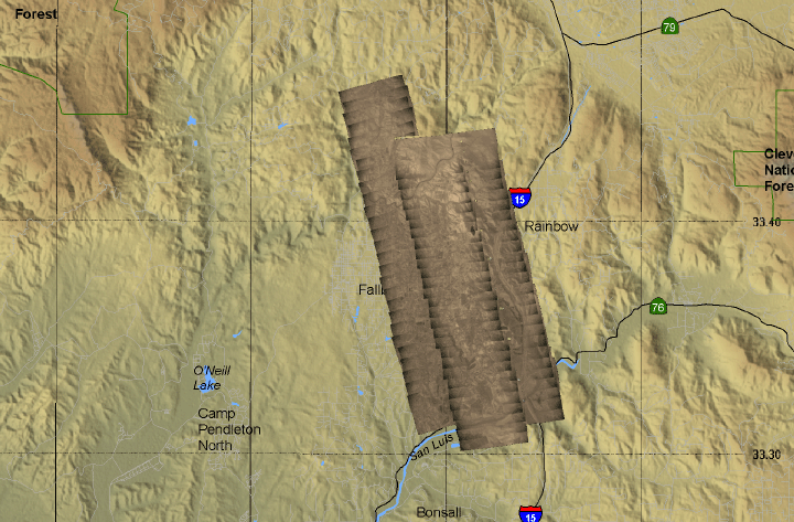 Ground surface temperatures as viewed from above at 8-12 micrometers wavelength on 28 October 2007, between 15:44 and 15:59 PDT.