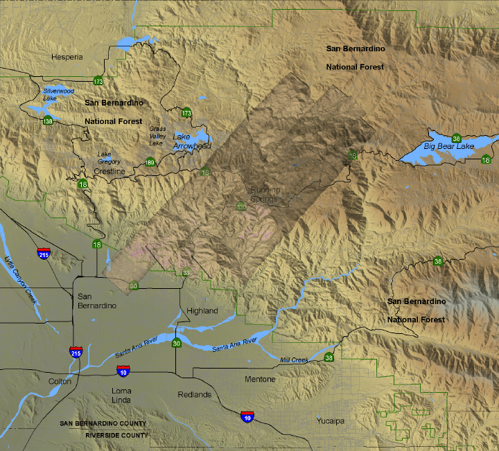 Ground surface temperatures as viewed from above at 8-12 micrometers wavelength on 28 October 2007, between 13:13 and 13:45 PDT.