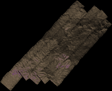 Purple is used to show cooling ash but could be associated with bare ground away from fire.