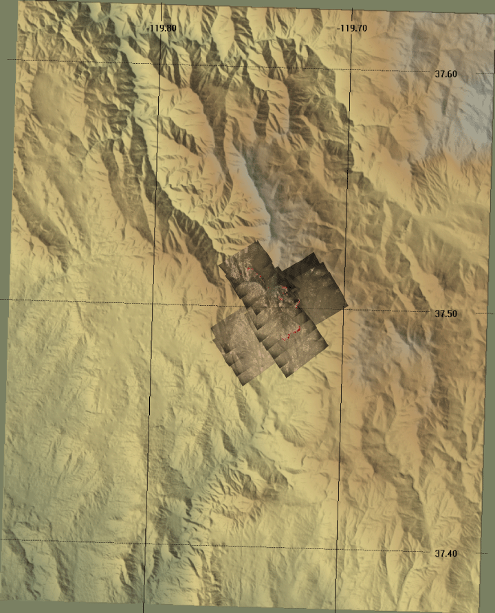 Ground surface temperatures as viewed from above at 8-12 micrometers wavelength on 26 June 2008, between 15:59 and 16:08 PDT.