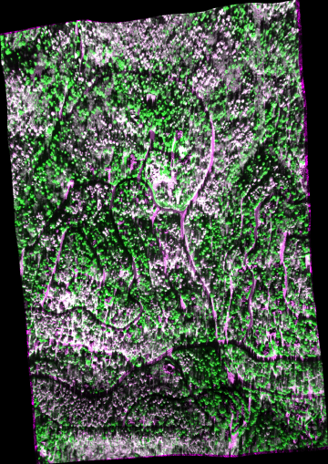 Urban forest of the North Shore area near North Bay of Lake Arrowhead. This RGB image was acquired at 11:53 am, 3 December 2002. |