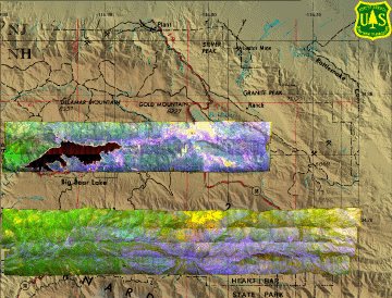 Map of the western San Bernardino mountains showing flight paths for data collection transects.