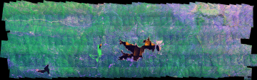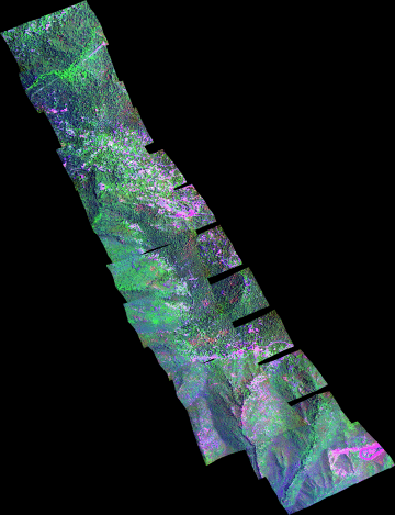 (This RGB image shows reflected red light at 650 nm in red, reflected NIR at 850 nm in green, and thermal IR at 10.5 um in blue.)