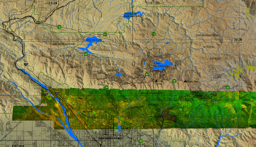 Mountain and Keller Peak area. Color overlays show area of processed