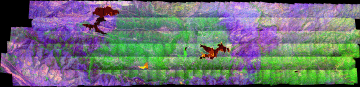 (This RGB image shows reflected red light at 650 nm in red, reflected NIR at 850 nm in green, and thermal IR at 10.5 um in blue.)
