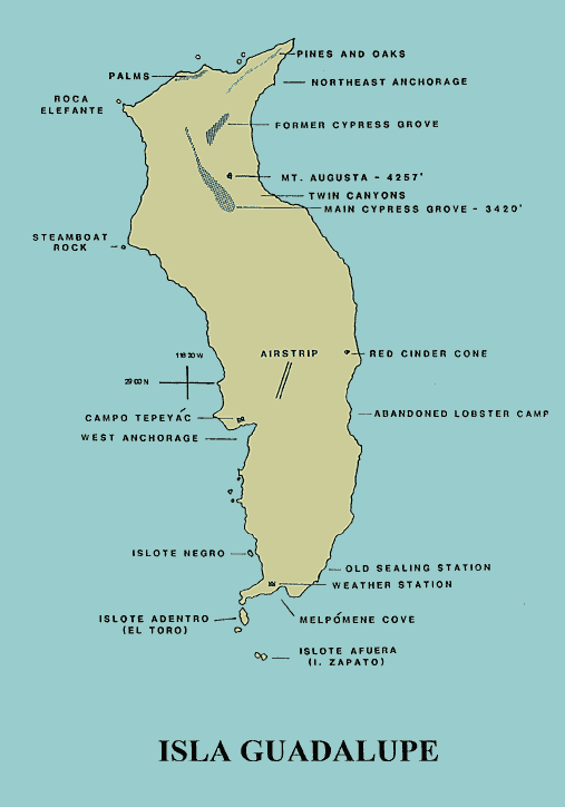Perspective view of the relic Guadalupe Cypress grove on the highest part of the island.