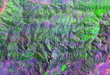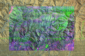 Shaded relief map of the Mt. Baldy, and Glendora quadrangles.