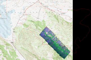 Plan view of imagery shown on topo map (DRG), with Mataguay Fire perimeter shown in red. |