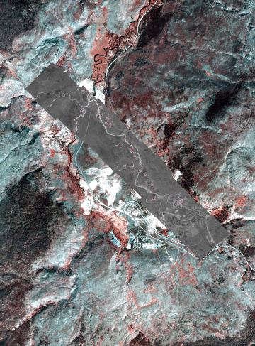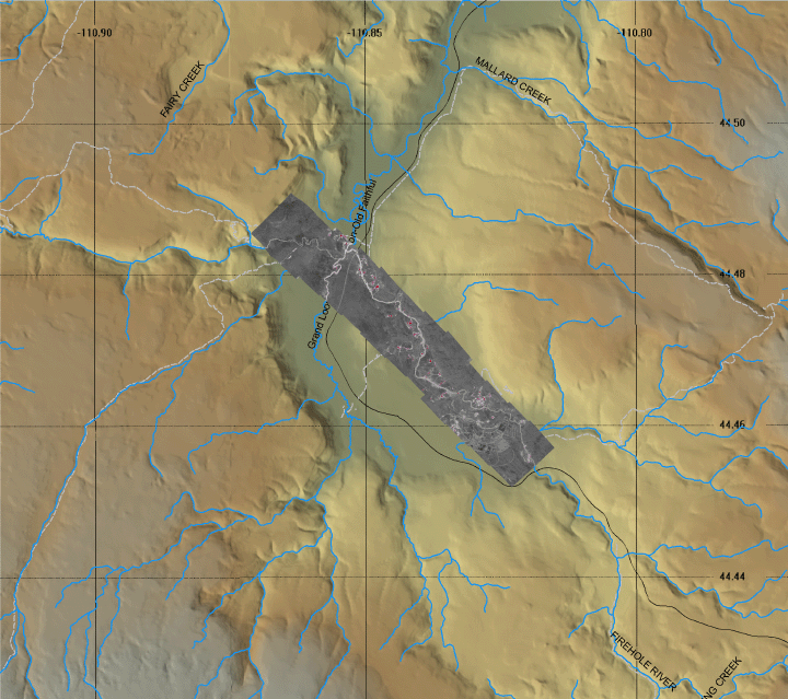 Image mosaic from Old Faithful. Color background image is a DOQQ from 2002.