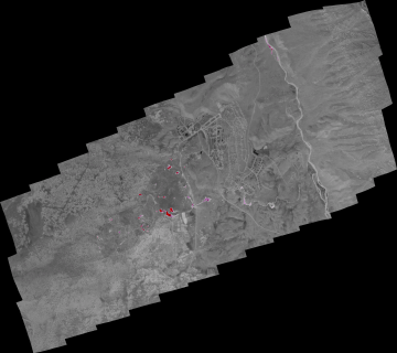 Images were collected from the PSW Airborne Sciences Aircraft flying over the area of the Mammoth Geyser Basin at 19:30 MDT.
